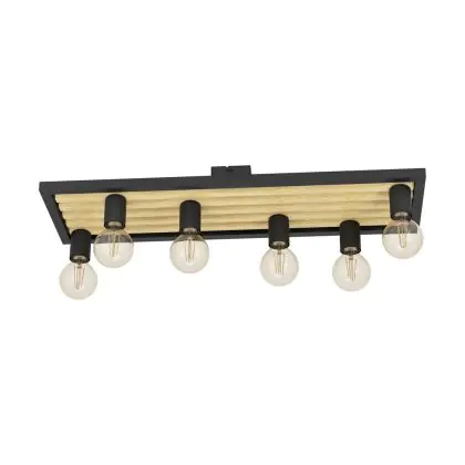 Eglo Luce da soffitto Consett Acciaio Legna Nero Marrone | IP20 - Adatto per 6x E27