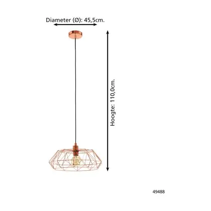 Eglo Luce Pendente Carlton 2 Acciaio Rame | IP20 - Adatto per 1x E27