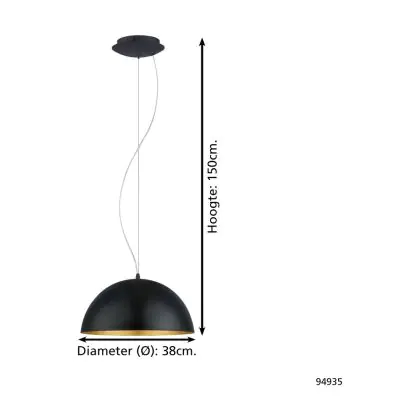 Eglo Luce Pendente Gaeta 1 Acciaio Nero Oro | IP20 - Adatto per 1x E27