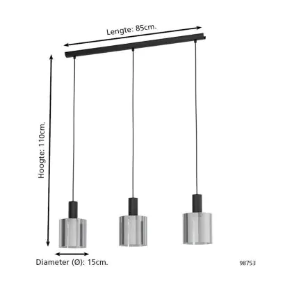 Eglo Luce Pendente Gorosiba Acciaio Nero | IP20 - Adatto per 3x E27