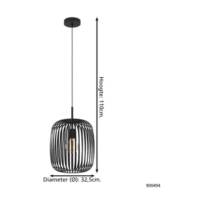 Eglo Luce Pendente Romazzina Acciaio Nero | IP20 - Adatto per 1x E27
