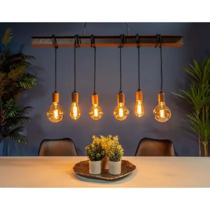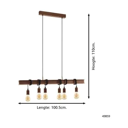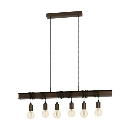 Eglo Luce Pendente Townshend 4 Acciaio Marrone Nero | IP20 - Adatto per 6x E27