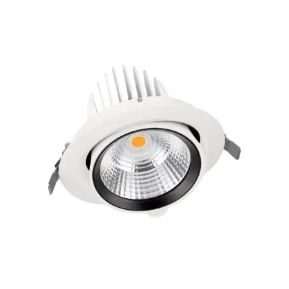 Grazie all’apertura del fascio luminoso a 24° ed al flusso luminoso intenso è possibile creare un’illuminazione d’accento perfetta per showroom, supermercati, negozi, ingressi e hotel. È possibile non solo ruotare il getto luminoso da 0° a 360°, ma anche ma inclinare il faretto fino a 35°. È la soluzione ideale e professionale per esaltare elementi decorativi o parti dell’arredamento.