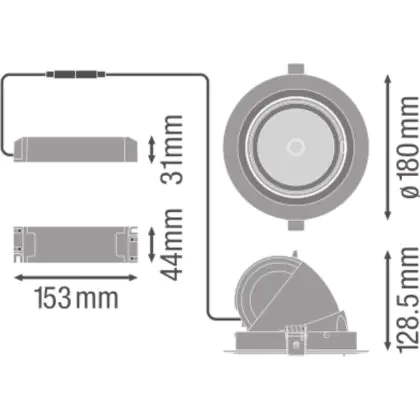 Descrizione Ledvance Faretti LED Vario Inclinabile 35W 3350lm 24D - 840 Bianco Freddo | Ritaglio 170mm