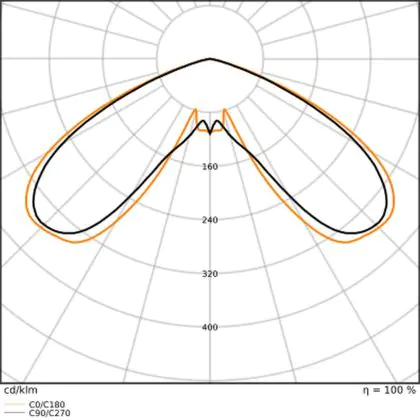 Questa lampada LED viene spesso usata per illuminare in modo ottimale aree piuttosto grandi. A questo scopo, serve un apparecchio che abbia alto rendimento luminoso in quanto maggiore è il rendimento luminoso, più grande è la superficie illuminata. Questo apparecchio emette una luce con potenza luminosa di 4200 lm e il rapporto lumen/watt di efficienza luminosa è di lm/W. Questo significa che l'apparecchio consuma poca energia per la quantità di luce che genera!