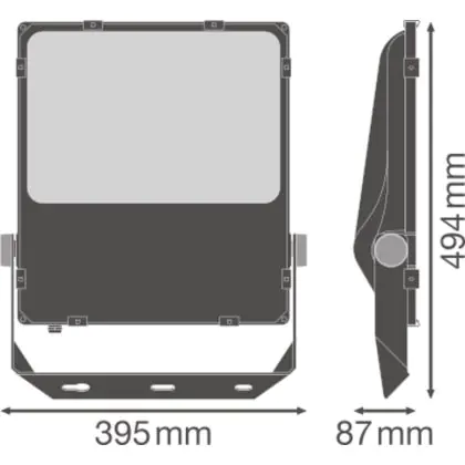 La copertura ottica in vetro temperato permette una distribuzione luminosa uniforme. In pochi secondi dall’accensione questo proiettore LED Ledvance raggiunge la luminosità massima di 11900 lm. Il flusso luminoso emesso è asimmetrico (55° x 110°).