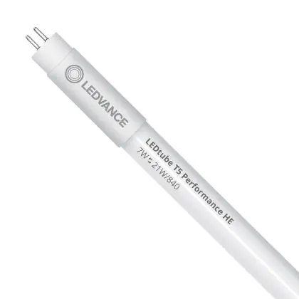 Il Ledvance Tubo LED T5 Performance (Mains AC) High Efficiency 7W 1000lm - 840 Bianco Freddo | 55cm - Sostitutiva 14W è un tubo LED perfetto per sostituire gli standard tubi fluorescenti di 14 W. Con questo tubo LED di Ledvance ti assicuri una lunga durata e 5 anni di garanzia.