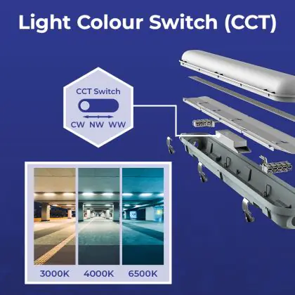 Descrizione Noxion Stagna LED Poseidon V3.0 18-30W 2340-4200lm - 830-865 CCT | 120cm - Cablaggio Entra/Esci (5x2.5mm2)