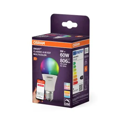 La Osram Smart+ Classic LED E27 Pera Ghiaccio Multicolour RGBW 9W 806lm - 827-865 Regolabile Bianca | Zigbee Dimmerabile - Sostitutiva 60W è la perfetta sostituzione per la tua lampada convenzionale 60W con attacco E27 grazie alla sua tecnologia LED. Passare a LED ti offrirà tanti vantaggi!