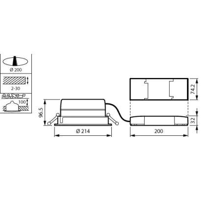 Descrizione Philips Downlight LED LuxSpace Compatto Altezza ridotta DN570B 36.3W 4400lm 80D - 830 Luce Calda | 214mm - Aluminium Riflettore