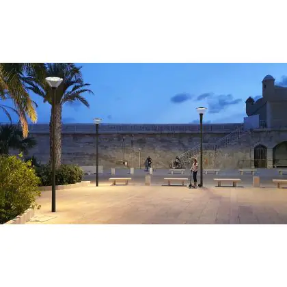 Se vuoi sostituire un vecchio apparecchio di illuminazione stradale scegli una nuova lampada LED. I LED hanno alta potenza luminosa e basso consumo energetico, come questo apparecchio che consuma solo 53 W. Ha un ciclo di vita di circa 100000 ore, che fa risparmiare anche sui costi di manutenzione e sostituzione.