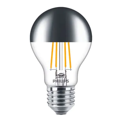 La Philips MASTER Value LED Bulbo E27 Pera Mirror 7.2W 650lm – 827 Bianco Molto Caldo | Miglior resa cromatica - Dimmerabile - Sostitutiva 60W è la perfetta sostituzione per la tua lampada convenzionale 50W con attacco E27 grazie alla sua tecnologia LED. Passare a LED ti offrirà tanti vantaggi!