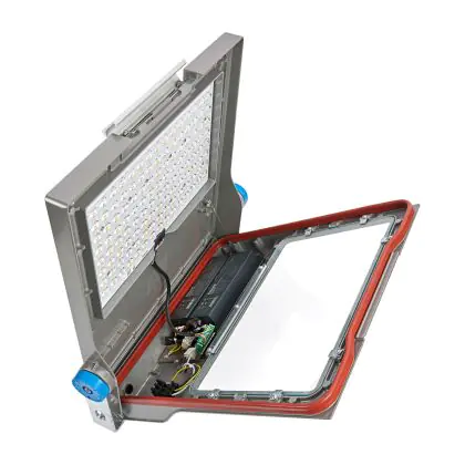 Questo apparecchio può essere usato sia in spazi interni che in spazi esterni, poiché ha indice di protezione contro l'ingresso di acqua e polvere IP66. In generale, un apparecchio con IP44 è resistente a schizzi di acqua e umidità, e può quindi essere installato in spazi esterni molto umidi o esterni riparati, come sono una tettoia. Un apparecchio che invece verrà esposto a intensi getti di acqua deve avere almeno IP54. Questa lampada ha anche un indice di resistenza a urti e impatti di IK09 - 10 Joule
