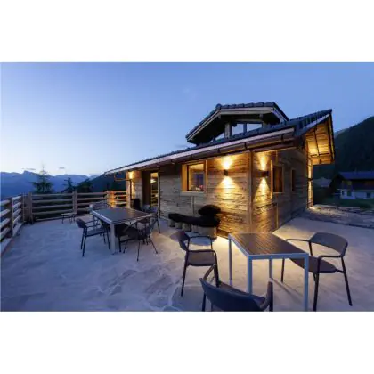 Questo apparecchio può essere usato sia in spazi interni che in spazi esterni, poiché ha indice di protezione contro l'ingresso di acqua e polvere IP65. In generale, un apparecchio con IP44 è resistente a schizzi di acqua e umidità, e può quindi essere installato in spazi esterni molto umidi o esterni riparati, come sono una tettoia. Un apparecchio che invece verrà esposto a intensi getti di acqua deve avere almeno IP54. Questa lampada ha anche un indice di resistenza a urti e impatti di IK06 - 1 Joule.